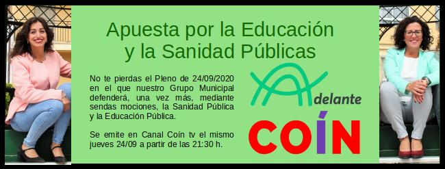 En el Pleno de 24/09/2020 defenderemos dos mociones en defensa de la Sanidad y la Educación públicas de calidad
