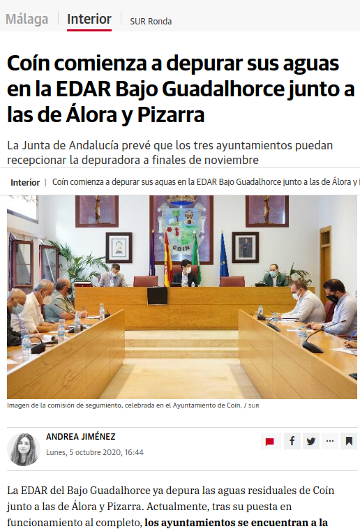 El origen de la información, el Alcalde de Coín y el Delegado de Medio Ambiente, que tras la segunda reunión de la Comisión Mixta de seguimiento de la depuradora, afirman que Coín ya depura sus aguas residuales desde el pasado 10 de agosto.