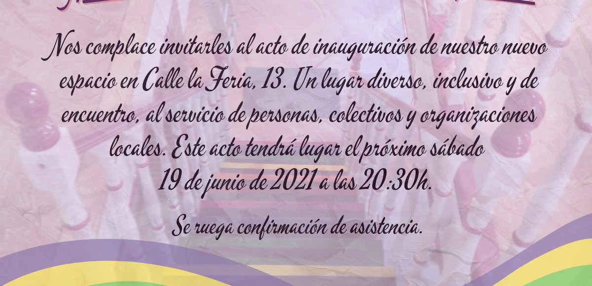 Con toda nuestra ilusión, os animamos a todos y todas a visitar este espacio el sábado 19 de junio desde las 18:30h, a asistir al acto que tendrá lugar a las 20:30h y a acercaros en cualquier otro momento a este espacio que con todo nuestro cariño hemos construido para todos y todas.