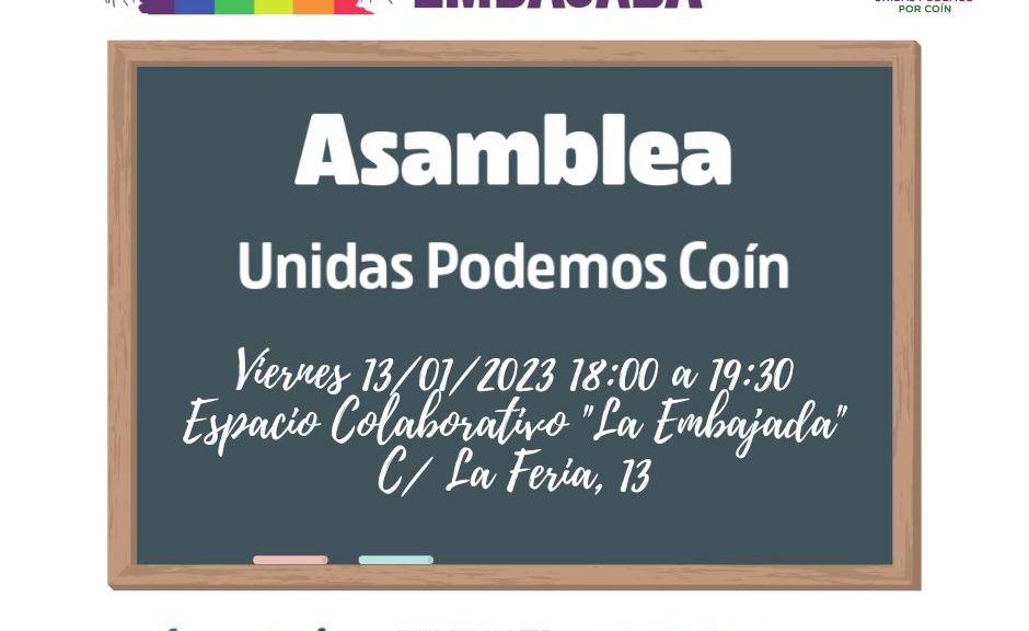 Mediante la presente comunicación se le invita a la reunión de la Asamblea de Unidas Podemos Coín, que se celebraráSeguir leyendo