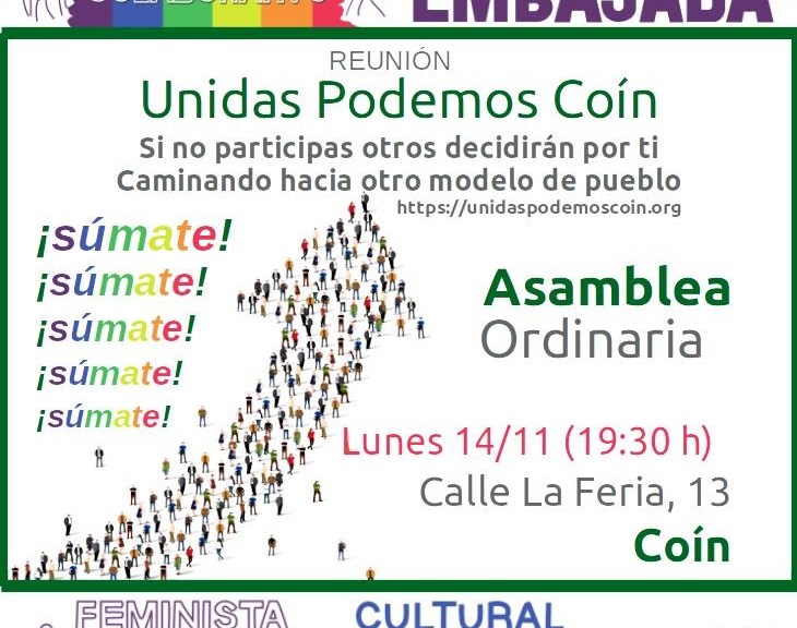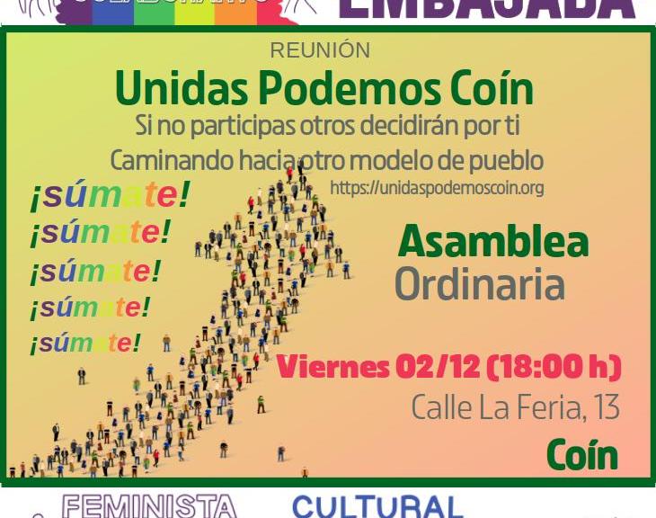 Reunión de la Asamblea de Unidas Podemos Coín. Viernes 02/12/2022 18:00 – 19:30 Orden del día